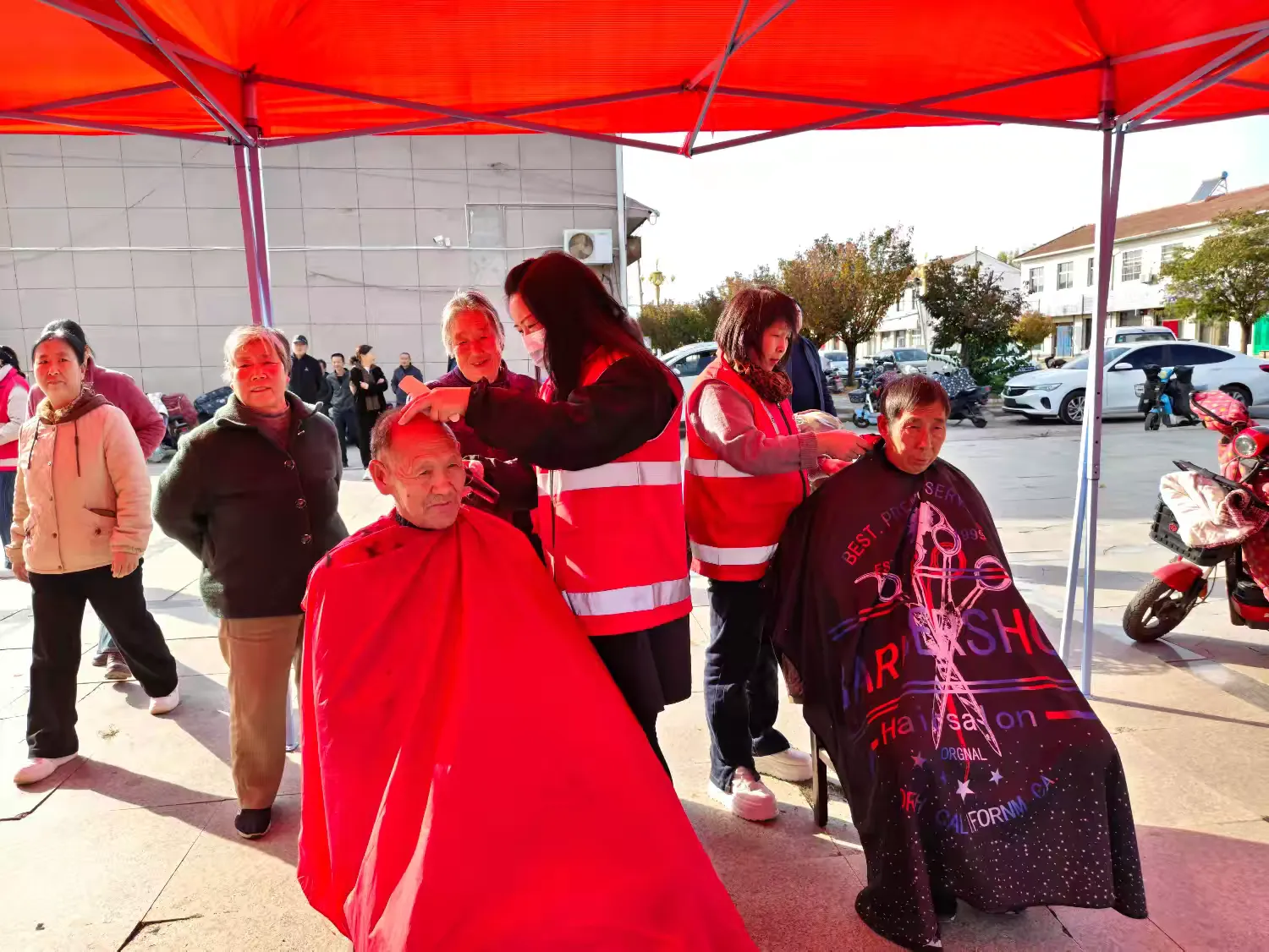 活动现场, 一个个服务摊位前人头攒动,温暖如画。在移风易俗殡葬改革摊位,文明实践志愿者通过展板展示,发放宣传页、有奖问答等方式,向广大群众宣传宣讲我县殡葬服务相关优惠政策;在“消防安全”科普摊位前,消防员通过现场演练、实物讲解的方式,教育引导群众注重日常安全用火;在爱心义剪摊位上,美发师熟练地为60岁以上老人修剪头发,边理发边与他们拉家常,现场气氛温馨融洽;健康义诊摊位前,医护志愿者认真地为村民检查身体,解答各种健康疑问,并通过方言讲解和现场演示急救知识,传授心肺复苏等实用急救技能;奎豪口腔、巴黎春天志愿者结合工作性质免费为老人诊断口腔疾病,拍摄日常生活照……一项项温馨服务,赢得了现场群众的一致好评。为营造欢乐喜庆的节日氛围,县老年合唱团和广大文艺爱好者通过自编自导自演,为大家送上了一台地方特色浓厚、群众耳熟能详的文艺视听盛宴,用文艺和服务温暖了在场老人的心。