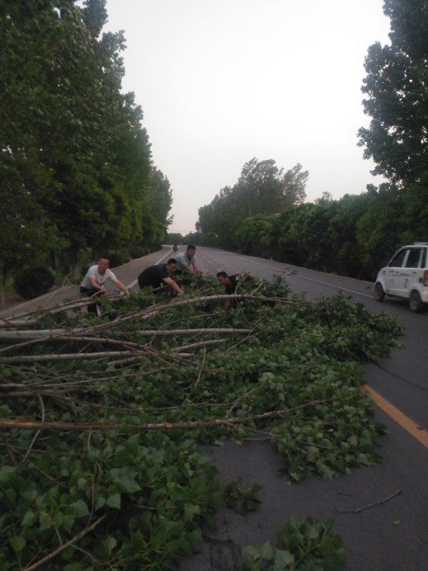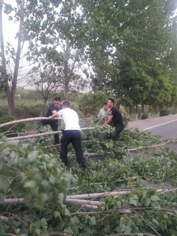 当日下午19时许,城市中队辅警姚军、赵岩等四名队员利用下班休息时间去同事家办事,当途经521国道韩阳段陈村附近路段时,突然狂风大作,将路边护路的大树刮倒在道路中间,堵住两边的过路车辆。“突发警情”!姚军等四名队员立即下车,用最短的时间,合力将倒在路中的大树清理到路边,及时消除道路安全隐患。